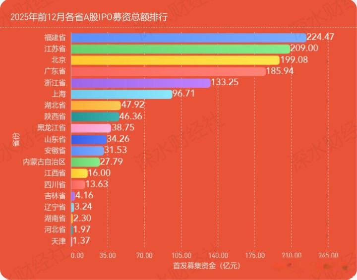 从募资额来看,2025年江苏A股募资总额为209亿,仅次于福建224.47亿,排在全国第二。